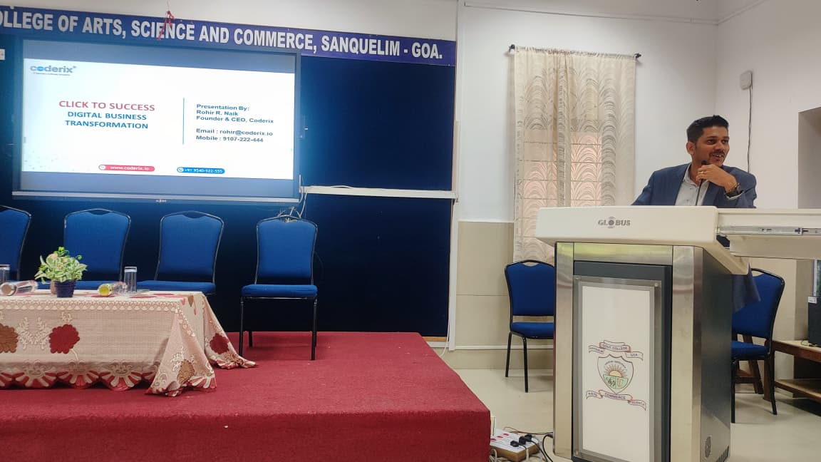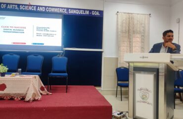 The Department of Commerce at Government College of Arts, Science & Commerce, Sanquelim, affiliated with Goa University, hosted an engaging and insightful session on “Click to Success: Understanding Digital Business Transformation” on September 4, 2025. Rohir Naik was invited as a resource person to deliver the talk to the Commerce students.