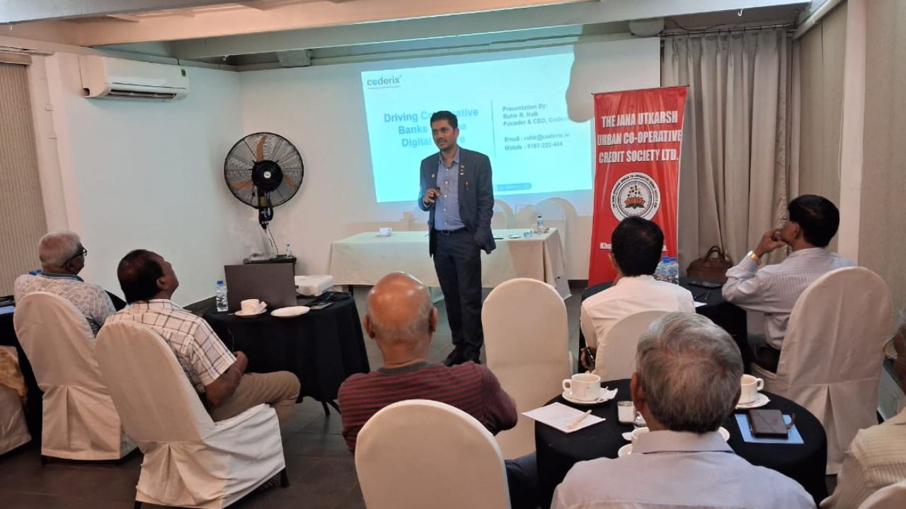 Rohir Naik, the Founder & CEO of Coderix, was invited as a resource person to conduct an energetic and insightful workshop on “Digital Transformation for Cooperative Banks” with the Directors of The Jana Utkarsh Urban Co-operative Credit Society Ltd. The session focused on equipping cooperative banking leaders with strategies to embrace technology in this evolving financial landscape.