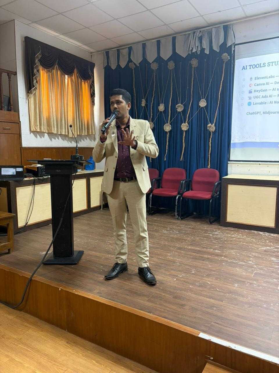 The session also highlighted how AI is impacting different fields such as finance, operations, marketing, and entrepreneurship. Students were encouraged to learn how AI tools work and understand how they can use them in their own careers. The focus was on building practical skills that align with industry needs.
